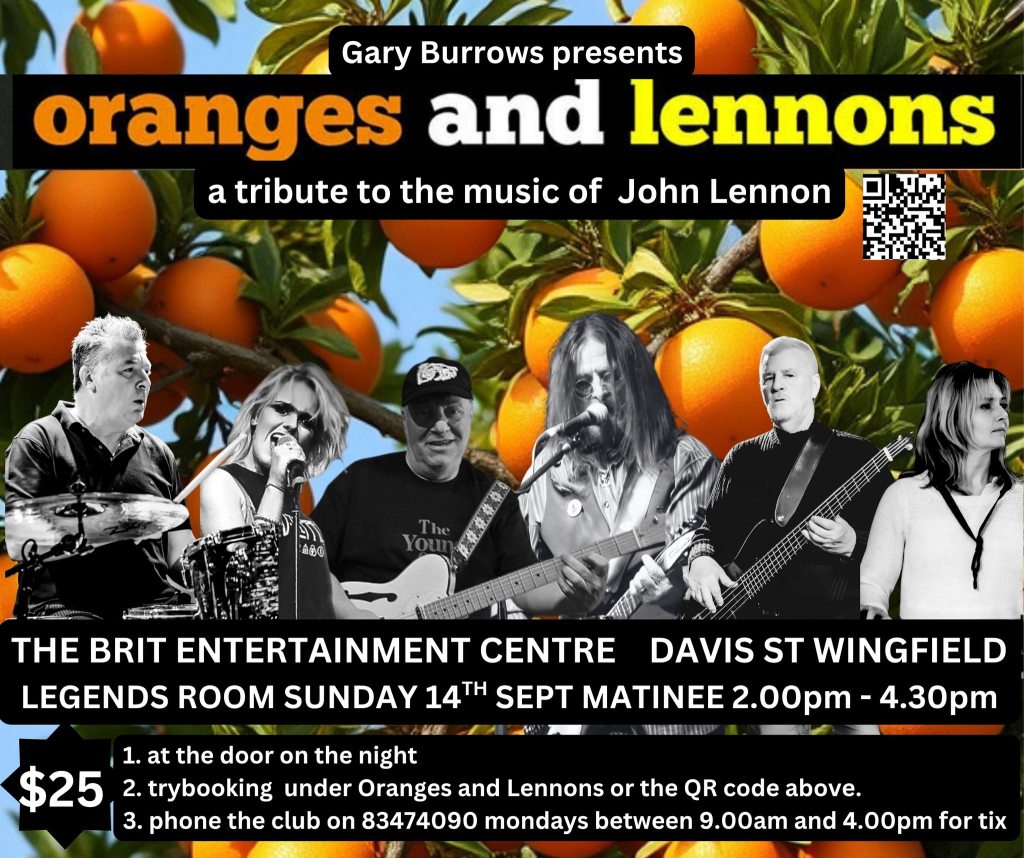 CLICK ON THE LINK TO GRAB YOUR TICKETS: Gary Burrows Presents Oranges and Lennons Tickets, The BRIT, Wingfield | TryBooking Australia